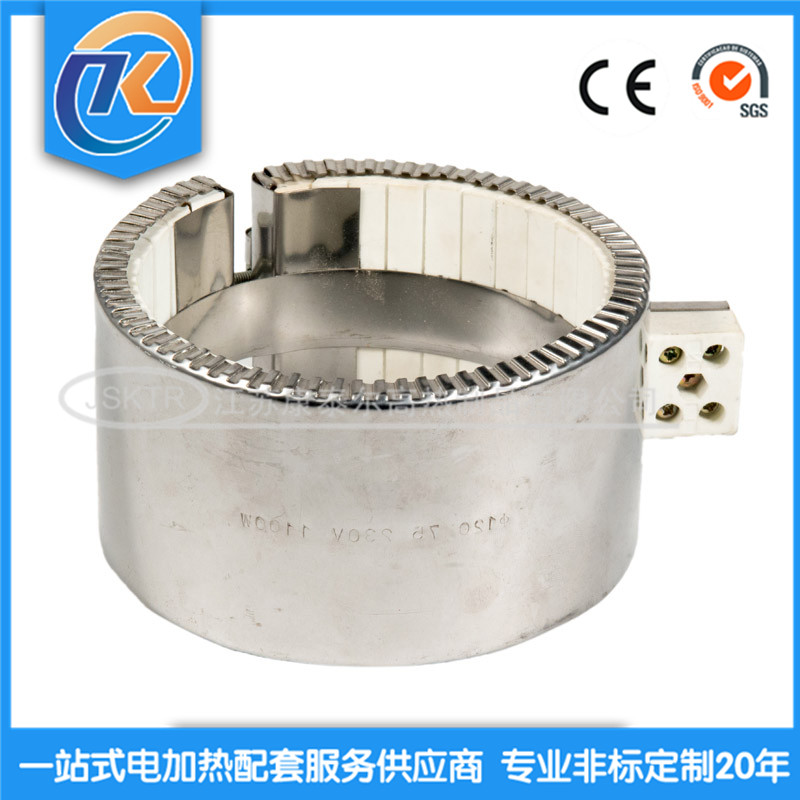 產(chǎn)品結(jié)構(gòu):陶瓷加熱器是用不銹鋼皮做外殼,內(nèi)有較高絕緣耐火程度的陶瓷內(nèi)穿上電阻絲,再用機(jī)械絞制成型,接通電源,即可使用。